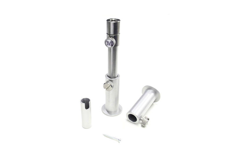 All you do is screw the stage stand to the platform and then lock your banksticks into the stands. Each Stage Stand comes with an inner sleeve which means that the stand can be used with either our Rock Solid the new Super Slinky Sticks or with almost any other bankstick on the market.